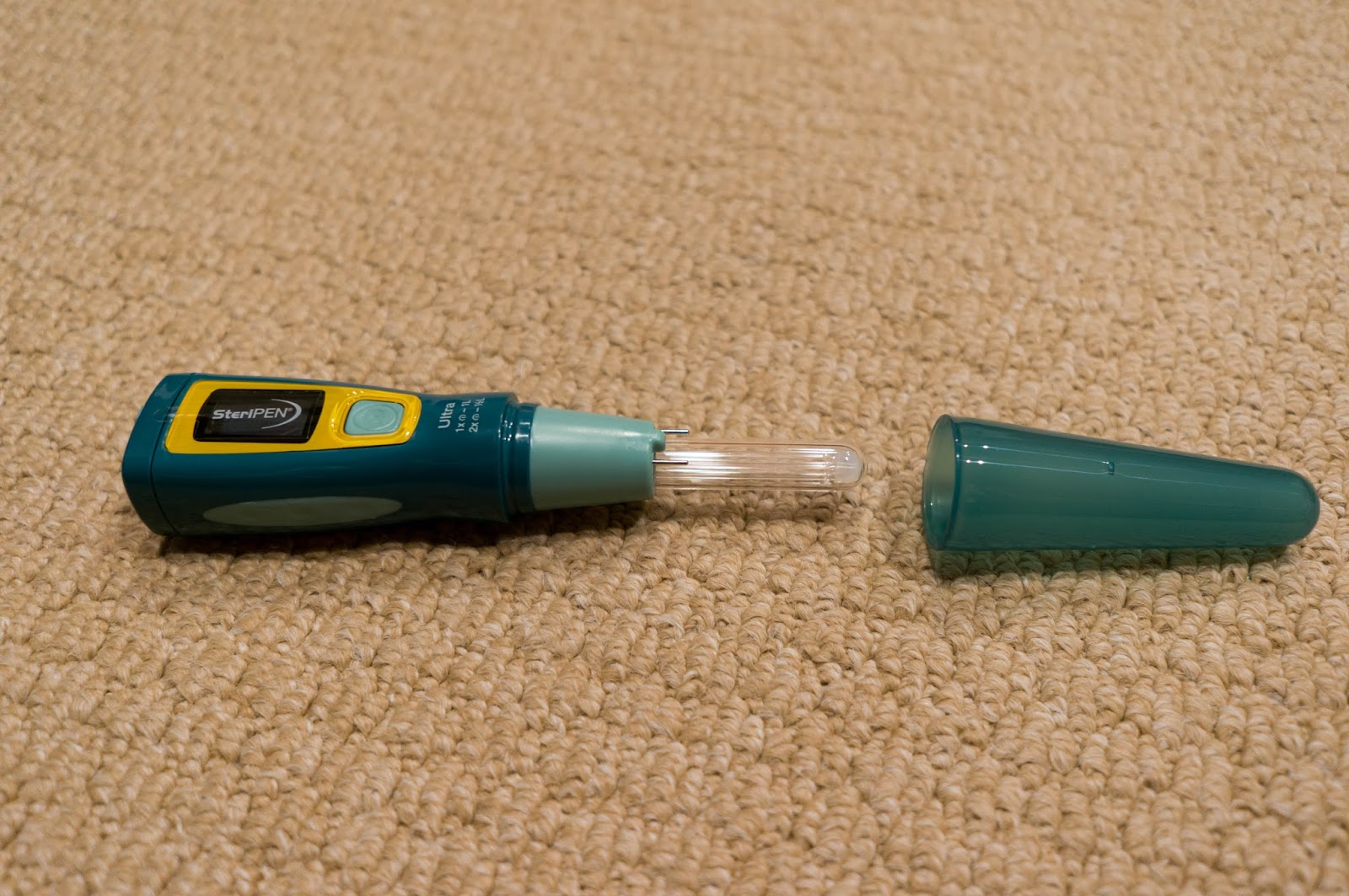 One of outdoor equipment I got before is a water treatment with UV (Ultra Violet) light. The idea of this is to kill almost all bacteria, viruses and protozoa. The advertisement says 99.9%. They have some data to show it works. Typically, I am using a filter type purifier when I hike. Actually, I did not have a chance to use this even if I own it.